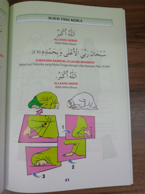 Lafaz niat solat dan bacaan surah solat disediakan. Makna bacaan rukuk, sujud, iktidal, duduk antara 2 sujud dalam solat. Sujud dua kali dengan toma`ninah; Bacaan rukuk dalam solat rumi.